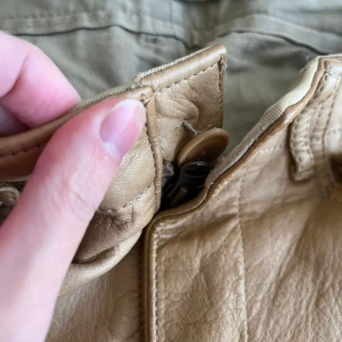 ビンテージのため、ボタンのゆるみ、複数箇所に汚れ、傷ありますが、良い味が出ており、個人的には良い経年劣化だと思います
