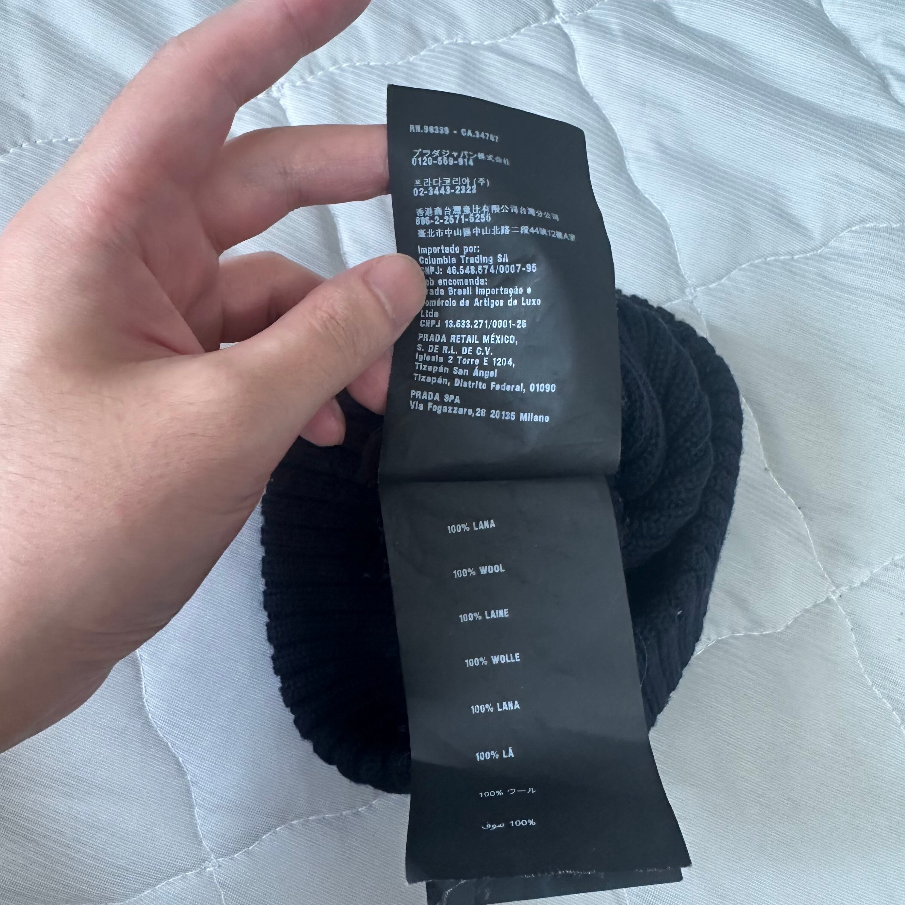 プラダのラバーロゴ入りのニット帽です