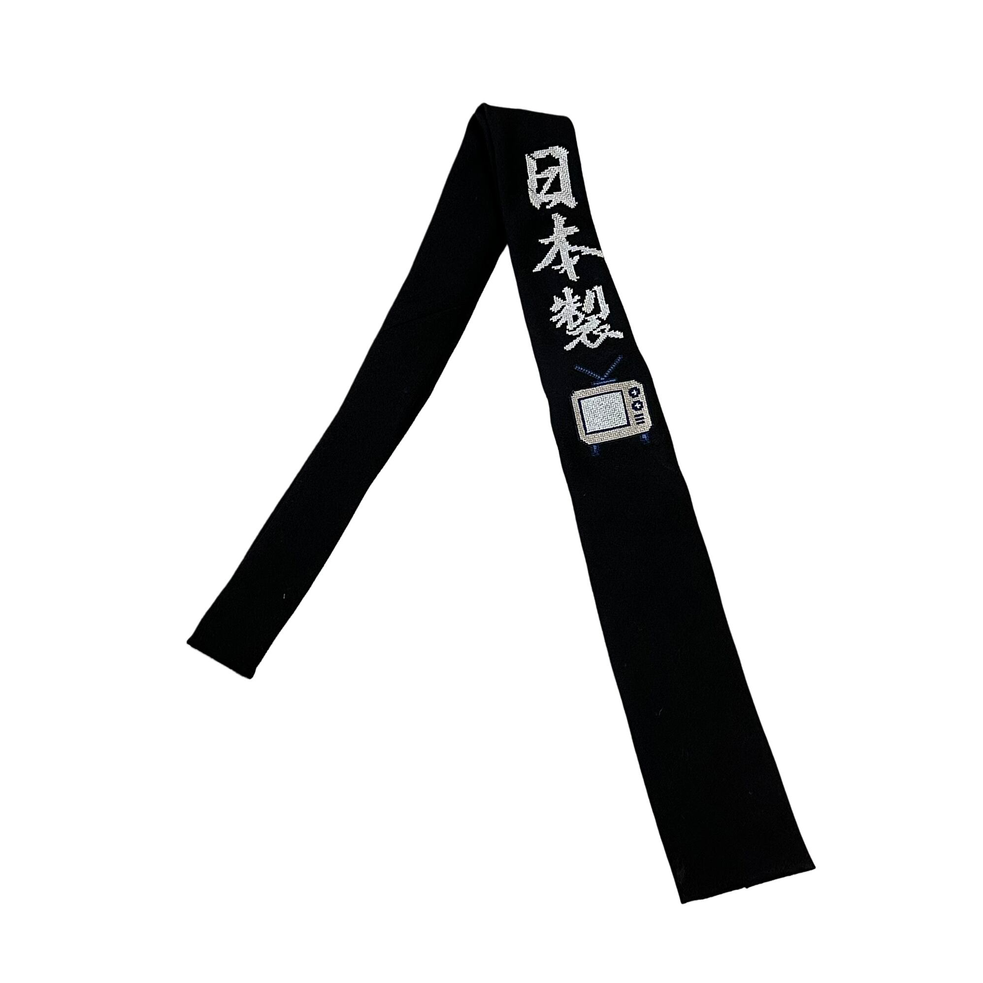 2020A/W LOOK7で使用した 日本製 、 国産 、 和製 の文字をドット刺繍で表現したネクタイ。コーディネートのワンポイントで活躍するアイテムです。