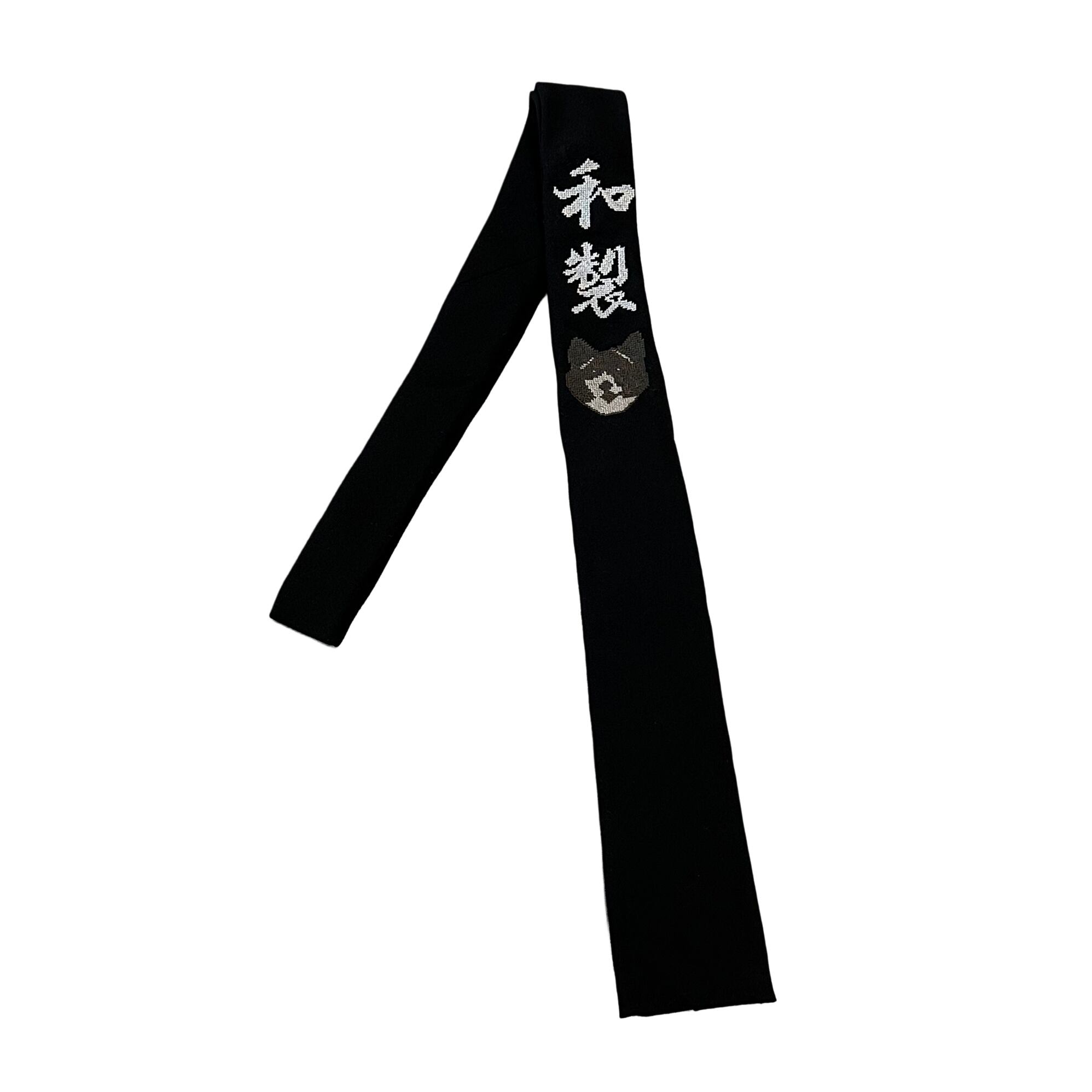 2020A/W LOOK7で使用した 日本製 、 国産 、 和製 の文字をドット刺繍で表現したネクタイ。コーディネートのワンポイントで活躍するアイテムです。