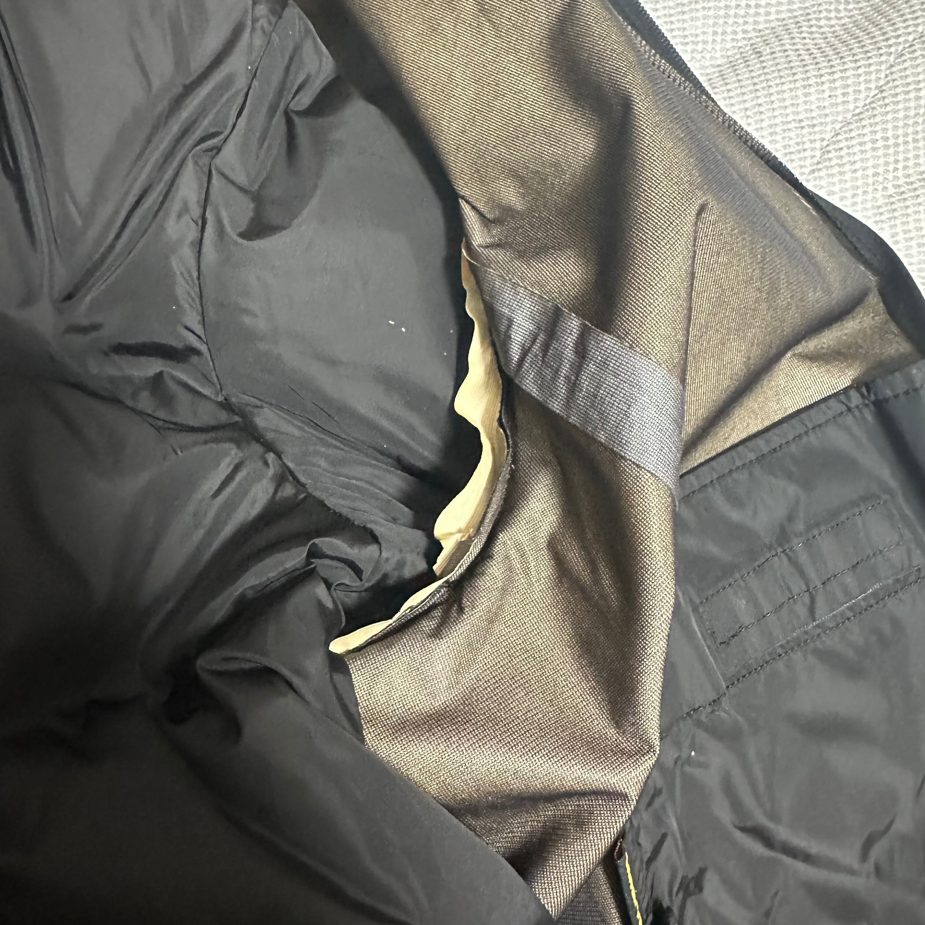 ビンテージのため、内側シームテープはがれ、裾のテープ剥がれベタ付き、テープの剥がれた部分がライナーにへばりついているため、ライナーもベタつき、袖やポケット付近に傷、汚れなど使用感あります。